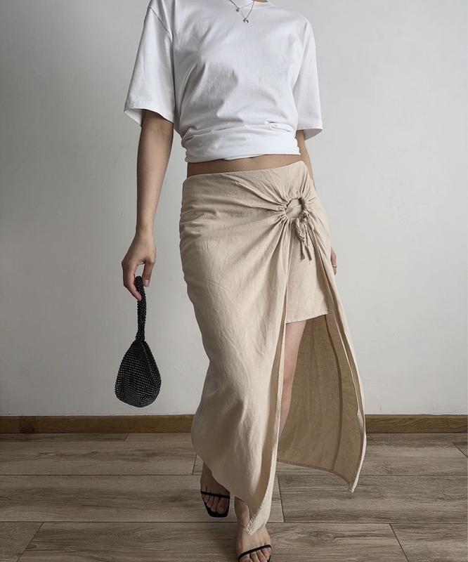 Спідниця міді з розрізом primark zara h&m льон віскоза натуральна