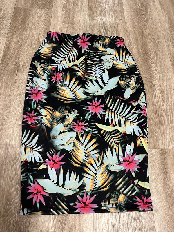 Разноцветная юбка карандаш в листьевой принт цветочный new look m-l