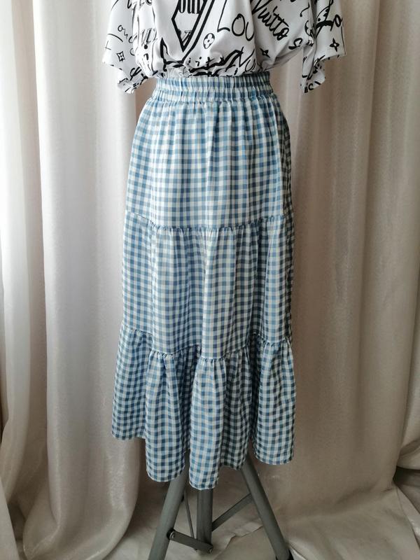 Мега стильная юбка в клетку длины миди волан очень круто смотрится с футболкой и кроссовка...