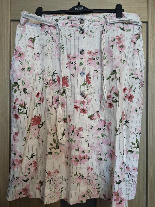 Полуобхват талии 51 см, полуобхват бедер до 68 см, длина юбки 75 см. Все пуговицы расстегиваются