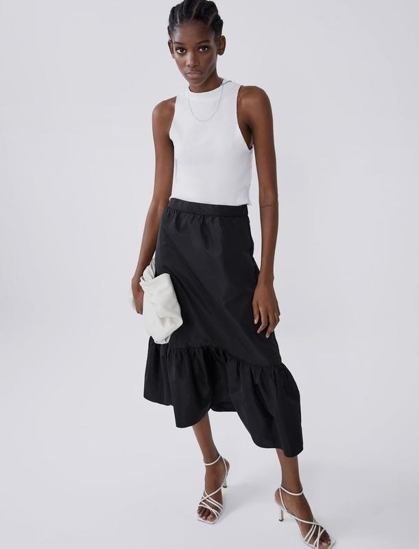 В наличии удивительная юбочка Zara атласного черного цвета. Она воздушной структуры, супер невесомая, будто облачко..это и создаст Тебе состояние легкости и наслаждения! А рюшечки внизу сформируют идеальный женственный силуэт.. ☺️ Она фантастически прекрасна! Единственная в наличии! Длина: 80 см Полуобхват талии: 35 см Сбоку замочек.