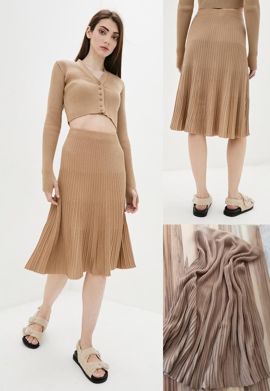 Плиссированная вязаная миди-юбка карамельного цвета