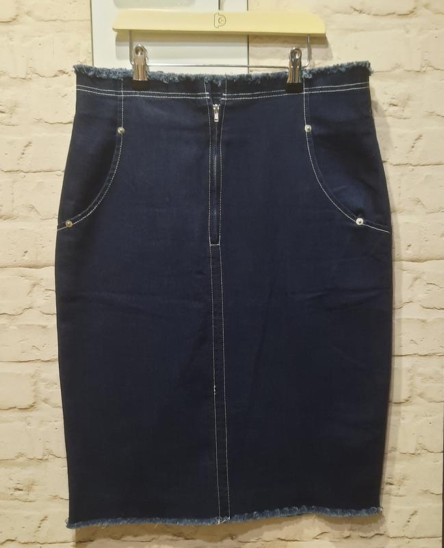 Спідниця легкий синій джинс, ззаду є невеликий розріз. Висока посадка. Необроблений низ. По боках кармани. Стан відмінний. Всі заміри дивись уважно по фото.