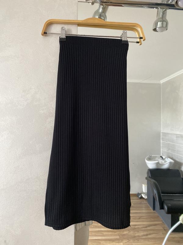 Черная юбка в рубчик на небольшую девочку с разрезами Европейский размер 34 Новая, но без бирки Замеры: Полуобхват в талии -31 см Длина 64 см Разрезы 20 см