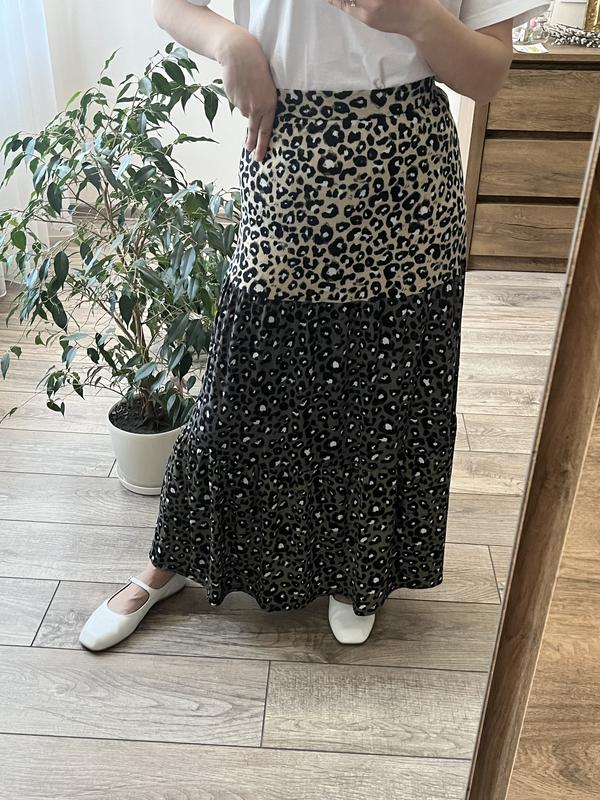 Длинная юбка с леопардовым принтом, размер XS (рост модели 161 см)