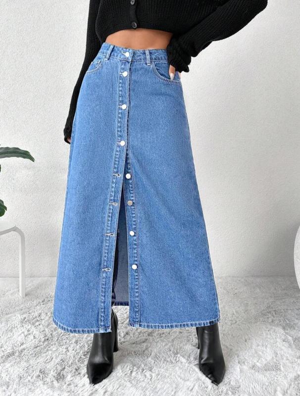 Довжина - міді Матеріал - джинс Обʼєм талії - 68-70 см Обʼєм бедра - 80 см Нижче бедра - 90-95 см Довжина - 94 см