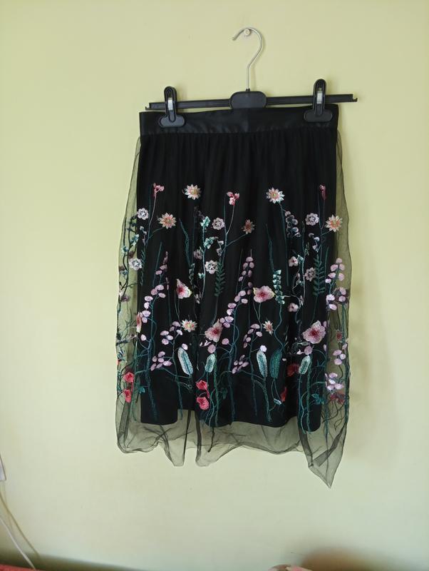 Продам. очень красивую фатиновую юбочку,всю расшитую цветами.Сверху фатин, под низом подкладка.Размер С.В идеальном состоянии.