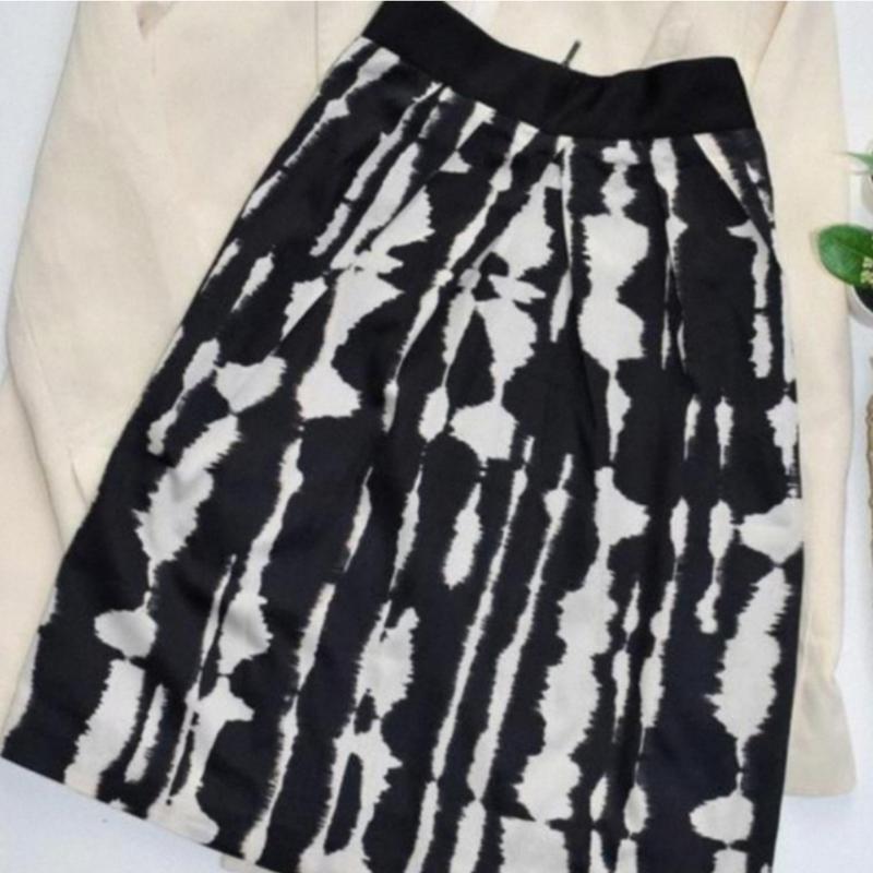 Стильная легкая юбка с защипом и карманами, сзади на молнии, стан великолепен без дефектов. Размер: 10 Длина: 56,5 см. По поясу: 36 см. ПОБ: 53 с. замерила по подкладу 100% коттон,пояс полиэстер