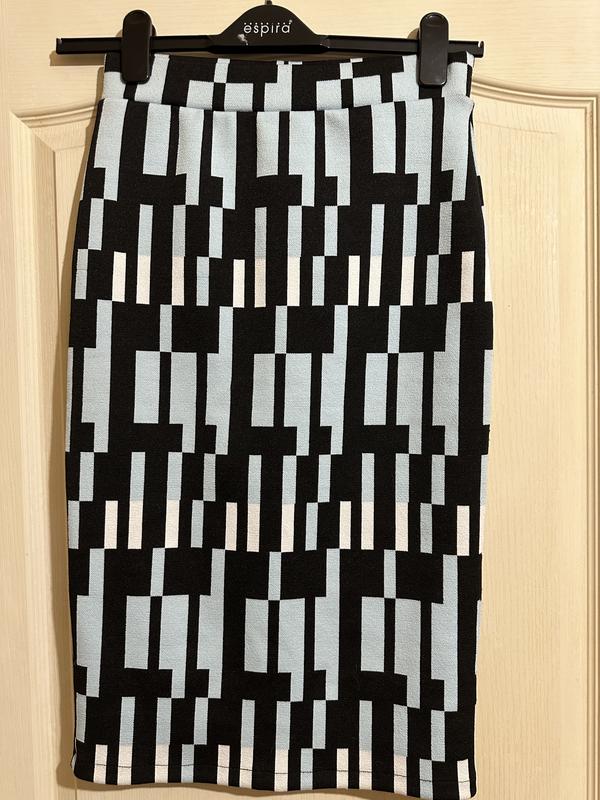 Спідниця обтягує по фігурі, тканина добре тягнеться. На 36 розмір, обʼєм 90-96см