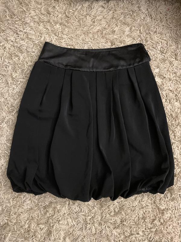 Юбка-баллон объемная. С атласным поясом и атласными вставками сзади. На подкладке. Бирки срезаны. Ткань плотная и довольно тяжелая. Гладкой структуры. Состояние отлично - без дефектов и нюансов. Цвет черный. Подойдет на размер S-M. Заміри на фото.