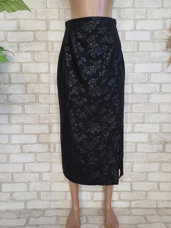 Новая нарядная юбка миди с фактурным цветочным рисунком в чёрном цвете, размер хс-с