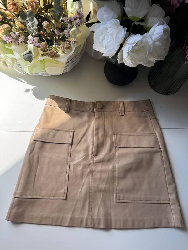 Спідничка з штучної шкіри Сток/секонд , нова з пломбою Розмір С Довжина 39 см Пояс 37 см Бедра 45 см Є запасний гудзик
