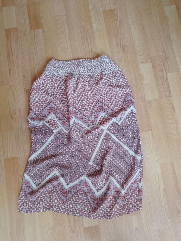 В отличном состоянии, очень лёгкая, разлетающаяся. Материал похож на шифон. Длина 80см, пояс резинка