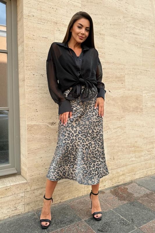 Трендовая юбка у леопардовый принт с серебряным переливом.