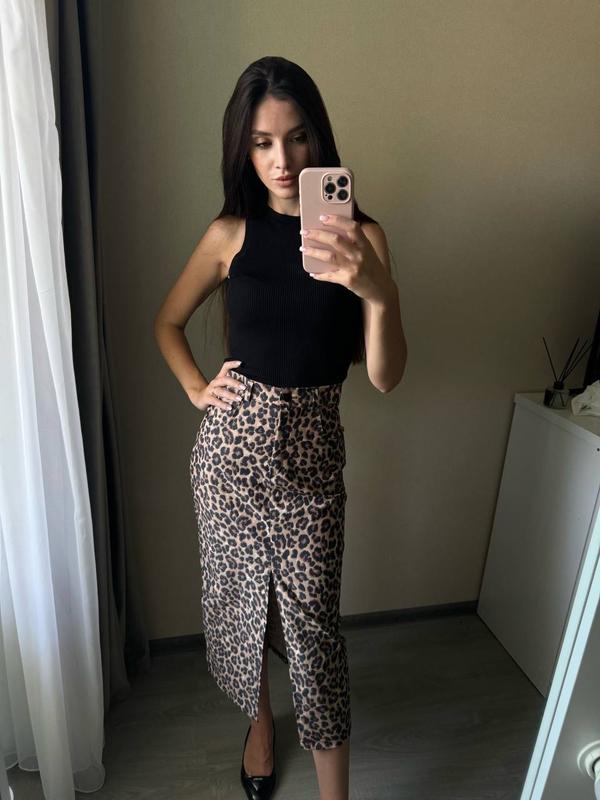Фото и видео наживо Юбка Анималистичная юбка с разрезом спереди - это идеальное решение Юбка имеет классический силуэт, база с которой можно комбинировать все Размеры : 42-44, 46-48, 50-52 Ткань : Джинс Турция Цвет: леопард