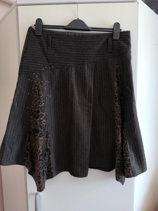 Юбка миди, разная длина. Стан идеален. Сбоку есть молния. Есть декор в виде камешков и кружева. Фирма River Island