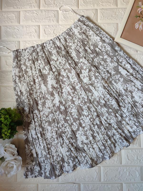 Юбка с принтом в пайетках,пояс резинка, ткань тонкая жатка, на подкладке/коттон/ Замеры на фото