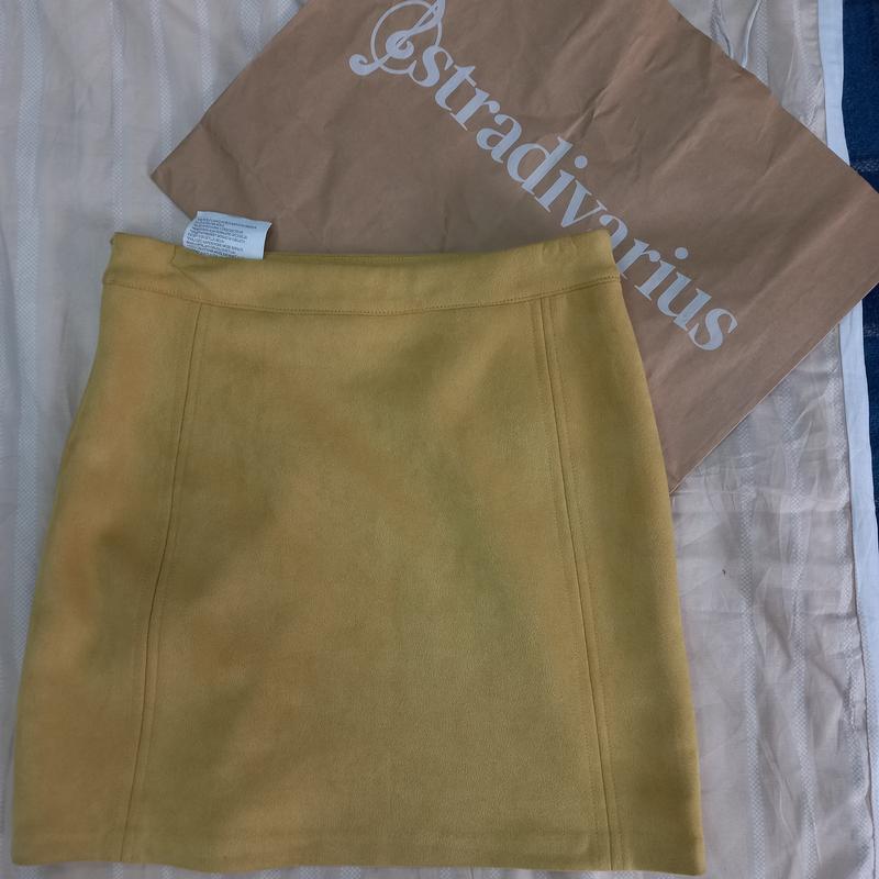 Юбка желтого цвета из искусственной замши.Короткая,збок на молнии.замеры: об.тал.35см., длина 39см.