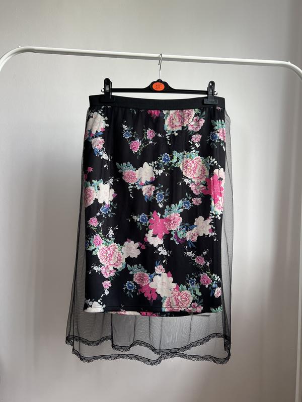 Изысканная юбка миди Высокая посадка приятная ткань к телу Цветочный принт Стан - идеальный Замеры П.о.т-44-49 П.о.б-52 Длина низ -69 Длина верх -81