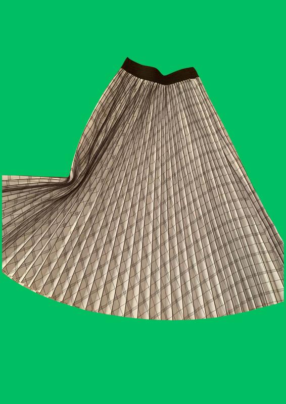 Стильная и модная юбка. Выполнена из плотного материала, без подкладки. Расклешенный силуэт с резинкой по верху и большим количеством складок. Универсальная длина ниже колена легко сочетается с любой обувью. Характеристики: Размер один: XS-M. Фактические замеры: обхват талии от 60 см до 100 см. Длина: 84 см. Отсутствие пятен или же других недостатков
