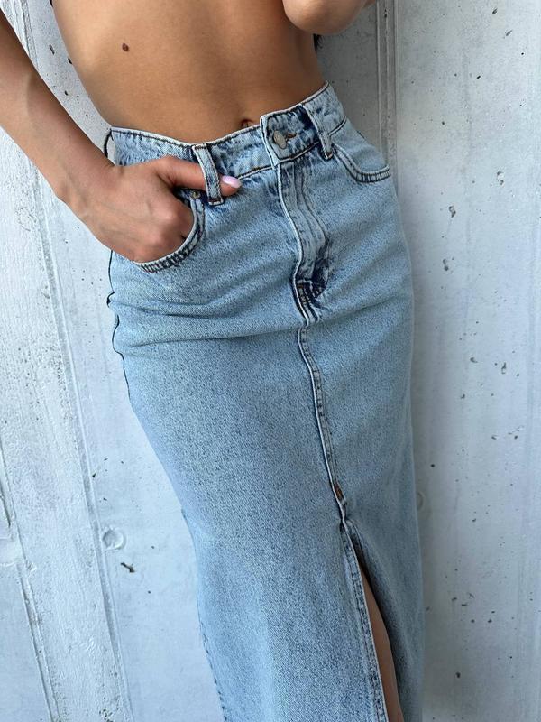 🔤🔤🌸 🔤🔤🔤🔤🪷 # 511 ▪️Производитель Турция 🇹🇷 ▪️Цвет: голубой ▪️Тканина: джинс 🌺 ▪️Состав: cotton 98% elastane 2% ▪Размеры: 34,36,38,40,42,44 ▪️Цена 950 грн Джинсовая юбка-миди с разрезом по центру с обработанным швом ❤️ Подчеркивает талию и удлиняет ваши безупречные ножки🥰 Ткань хорошо тянется ❤️ельза