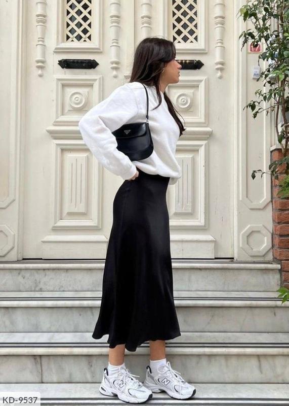 Спідниця KD-9537 Арт. 339 Размеры: 42-44, 46-48 Шикарні атласні спідниці. Мають міді довжину Підійдуть під будь-який образ. З кедами або з каблуками. Актуальні класичні кольори. Матеріал-королівський атлас. Якість тканини Колір-Чорний, беж, Блакитний.