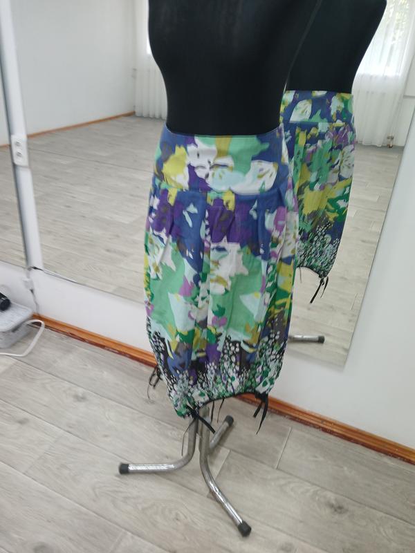 Юбка хлопковая , кокетка, длина кокетки 9см, четырехклинка , по кокетке сборка , по низу фигурные вырезы , длина общая юбки 75 см, состояние новое. Замеры: M От 74 Об до 116 L От 78 Об др 120 XL От 82 Об до 124