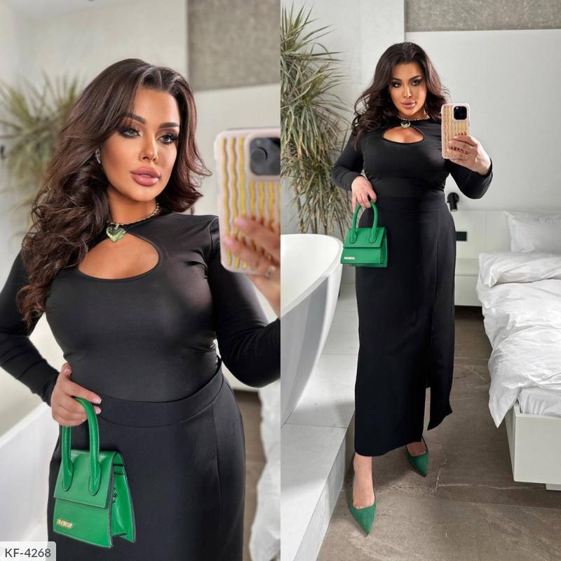 Спідниця KF-4268 Мод. 261 Размеры: 48-50, 52-54, 56-58 Трендова спідниця довжини максі Матеріал костюмний креп, без кишень та підкладки, не додає зайвого обєму на стегнах. Трішки тягнеться, сбоку застібка Довжина 98-100 см. На поясі ззаду резинка. Колір: чорний