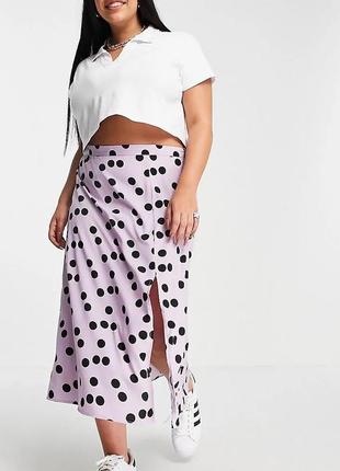 Дуже красива, актуальна спідниця в горох, на великі розміри, за біркою вказано 26 розмір. От-120 Довжина - 87см