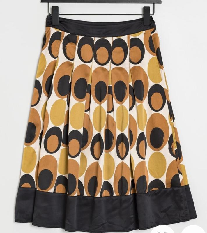 очень красивая сатиновая юбка, клеш в складку абстрактный принт ПОТ - 42 см ( садится на бедра) длина 70 см есть незначительные следы ношения - катышки на поясе