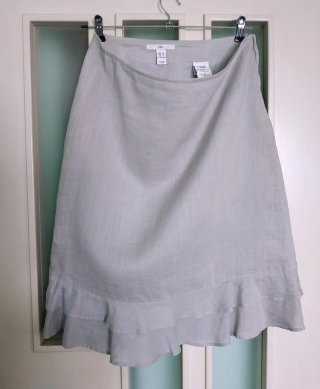 *Юбка миди А-силуэта лен*H&M* *жемчужно-серого цвета *сбоку на молнии *по низу два волана скроенных по косой *размер EUR 38 US 8 FR 8 СN 170/72A *обхват талии: 80-82 см без пояса можно спустить на бедра *обхват бедер: 96-100 см *длина 65 см *лен 100% *подкладка 100% полиэстер *стильная городская летняя юбка *в идеальном состоянии *по приятной цене *НОВАЯ*