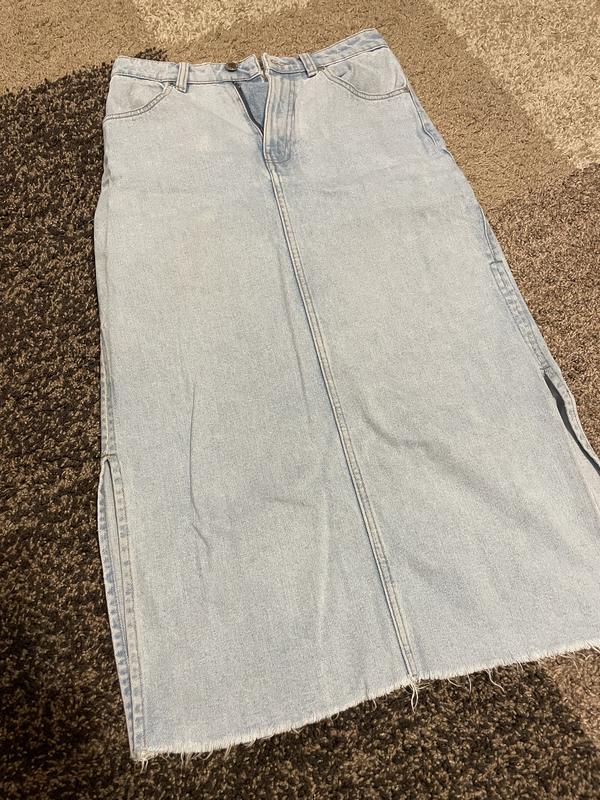 Трендовая юбочка Свет джинсовая джинсовая Идеальное состояние новой Размер с - м Сбоку разрезы и снизу красиво сделано