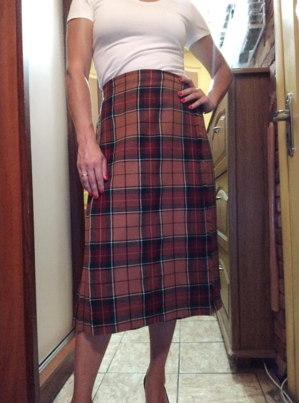 Шерстяная юбка на запах. Сзади плиссированная По бокам застежка из двух ремешков