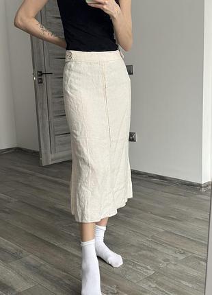 Жіноча бежева спідниця льон Розмір 16 XL Пів обхват пояса 46 см Пів обхват стегон 60 см Довжина 80см Спідниця міді Безпечна оплата є, але при передплаті 120 грн ( для оплати пересилання, в разі, якщо ви передумаєте забирати товар, адже шафа не компенсує вартість пересилання) речі, вартість яких менше цієї суми оплачуються на карту (лише вартість самої речі)