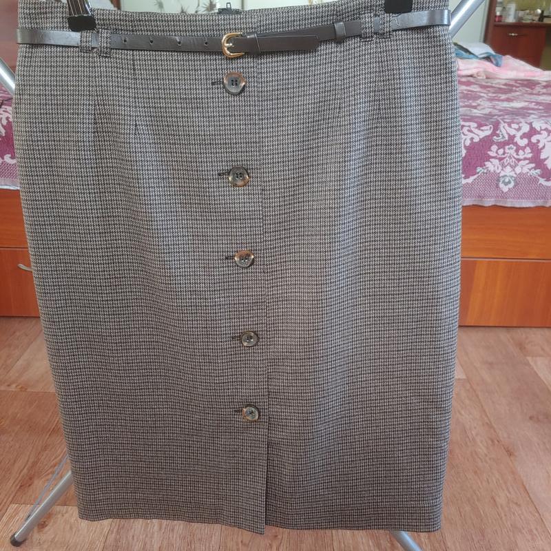 Спідниця в ідеальному стані, ремінь в комплекті, завужена до низу, тканина осінь- зима, склад на фото, помірно тягнеться. Пот 40-42 Поб 49-51 Довжина 58
