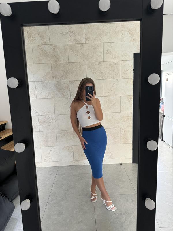 Юбка миди, красивый насыщенный синий цвет, хорошо тянется, размер с-м. Цена 250 грн