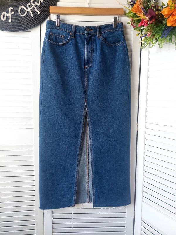 Джинсовая юбка миди длинная темно синяя с разрезом stradivarius s-m
