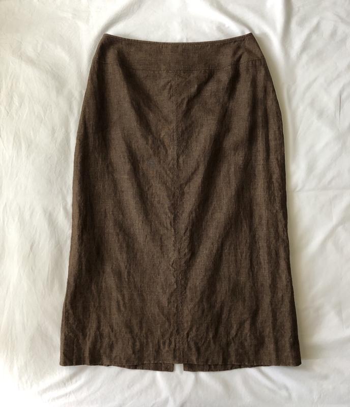Спідниця Joseph Janard. Стан ідеальний. Пряма, за коліно, верхній зріз на талії. Дуже гарний натуральний коричневий колір . На підкладці. Розмір: 38 ЗАМІРИ: Не тягнеться. НОТ-36 см НОС-50 см Довжина бічного шва — 73 см Висота розрізу — 16 см Колір: бронзовий колір засмаги. Склад: льон 100% Без дефектів, без слідів використання