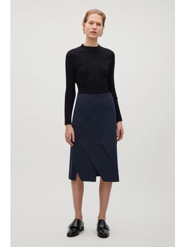 Юбка COS, размер М, подойдет на Л Изготовлена из панелей из трикотажа с современными деталями и двойным швом. Ширина пояса 43 см, поб 50 см, длина 73 см. одета 2-3 раза, состояние новой вещи.