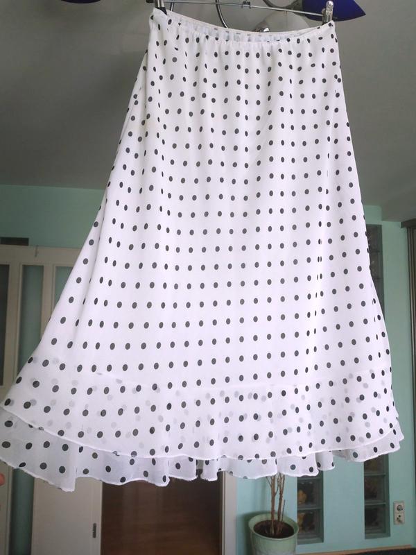 *Белая юбка миди А-силуэта в горох*Next* стильная, современная и "носибельная" (!) *двухслойная миди юбка *скроена по косой *талия 70/90 см (без пояса на резинке) можно спустить на бедра *бедра до 104 см *длина миди 73 см *UK 12 EU 38/40 US 8 (на 44/46 размер рост 165/175 см) *верх: 100% вискоза *подкладка: 100% полиэстер с воланом по низу *в идеальном состоянии *по приятной цене