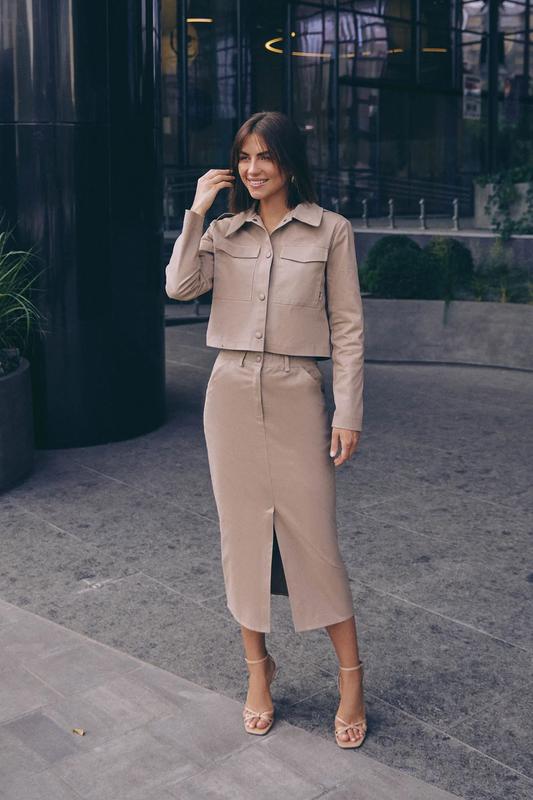 Жіноча спідниця міді зі стрейч-котону Ця жіноча спідниця міді зі стрейч-котону поєднує в собі комфорт і стиль, що робить її ідеальним вибором для демісезонного гардеробу. Прямий, рівний фасон забезпечує зручну посадку і підходить для будь-якого типу фігури. Декоративний елемент у вигляді розрізної полиці з шліцею додає спідниці витонченості, а конструктивні кишені роблять її функціональною. Характеристики: - Матеріал: Стрейч-котон - еластичний і приємний на дотик, забезпечує комфорт протягом усього дня. - Фурнітура: Кнопки, блискавка, резинка - для надійної фіксації та зручності. - Фасон: Прямий, рівний - класичний силует, що підходить для різних стилів одягу. - Сезон: Осінь, демісезон, весна - ідеальна для прохолодної погоди. - Декоративні елементи: Розрізна полиця з шліцею - стильний акцент на класичному дизайні. - Конструктивні елементи: Кишені - зручний і практичний елемент для повсякденного використання. - Довжина спідниці: 84 см для всіх розмірів (***, ****, *****XL). - Комплектація: Спідниця Ця спідниця стане чудовим доповненням до вашого гардеробу, надаючи можливість створити безліч стильних образів. ### Прання в теплій воді при температурі 30 ℃ Не відбілювати Гладити при температурі до 150 ℃ Хімчистка дозволена Замовлення можна оформити через Вайбер Дивіться також: - Спідниці - Жилетки, піджаки - Блузки - Костюми Щоб слідкувати за новинками та отримувати додаткові знижки, приєднуйтесь: ✔️ Телеграм ✔️ ***** ✔️ ********* Таблиця розмірів:
