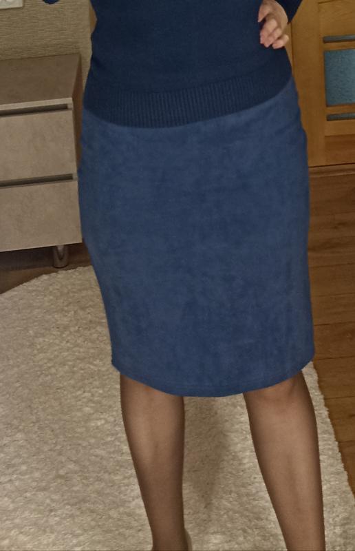 юбка карандаш из искусственной замши синего цвета без пояса с распоркой сзади