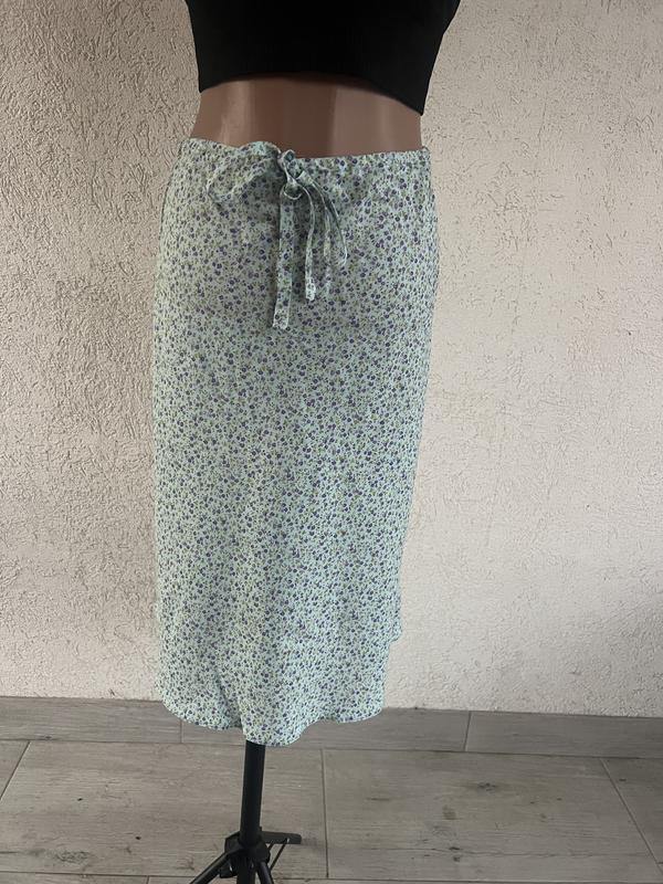 Вискозная юбка l оверсайз меди голубого цвета с цветочным принтом нарезинке