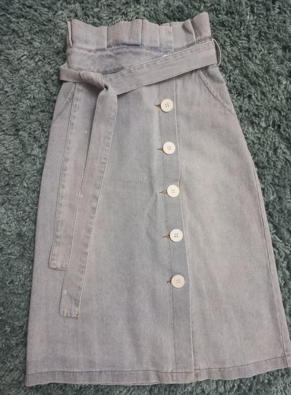 джинсовая юбка, стилизована пуговицами и поясом, красивый цвет