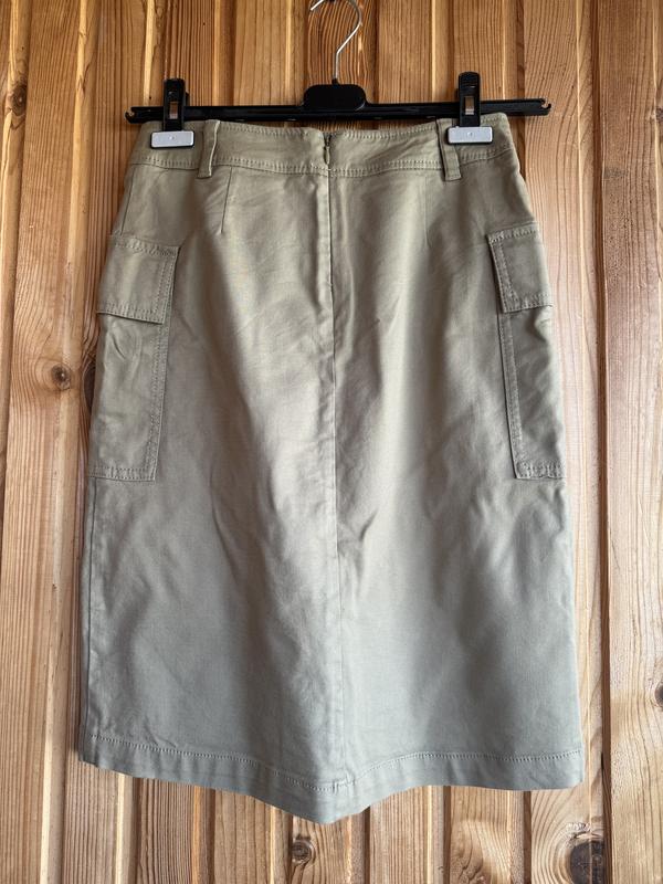 Стильная юбка с акцентными карманами, на запах Плотный коттон, красиво держит форму Наделась несколько раз Длина 59см Ширина по талии 34см Бедра 45см Низ 48см