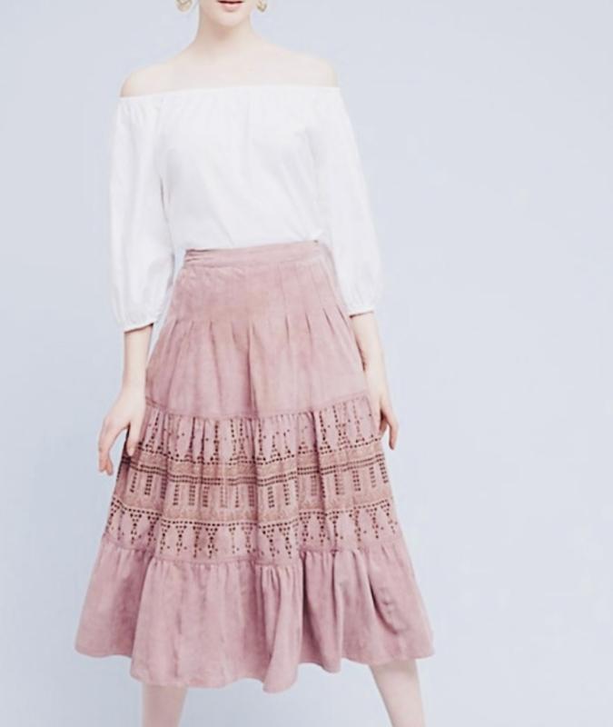 Коттоновая юбка миди а-силуэта с прошвой в цвете пыльная роза!!!