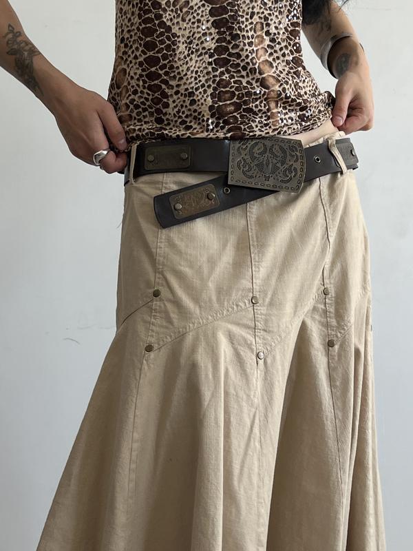 Бежевая юбка-миди с ремнем винтаж
