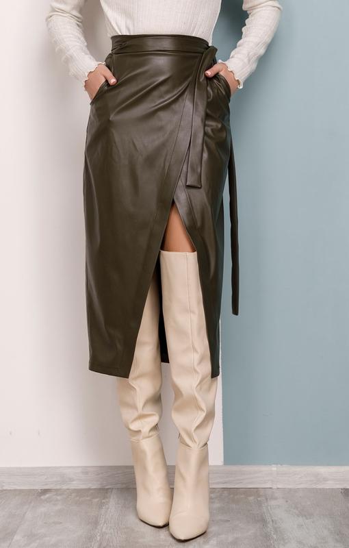 Мягкая юбка на запах из эко-кожи