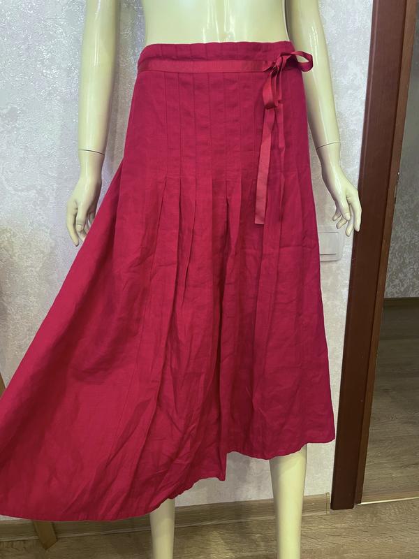 Батал!!! Льняная юбка миди клубничного цвета!!! Застежка - молния в боковом шве! В качестве декора репсовая лента в тон! Указан размер 20, подойдет на 3XL-4XL-5XL, ориентируйтесь на замеры: Длина - 74 см ПОТ - 53 см ПОБ - 71 см
