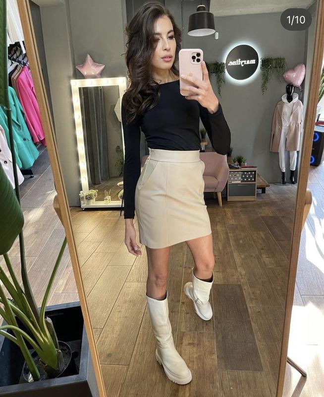 Стильная юбка из эко кожи от украинского бренда Maryline. Размер М. Круто сидит по фигуре.